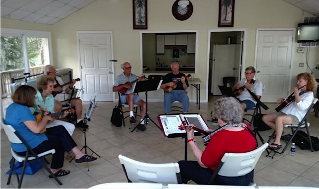 Jerry White and the Ukulele Group practice at the Rose Hill Lake House.